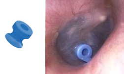 diabolo: los (links) of geplaatst in het trommelvlies (rechts)